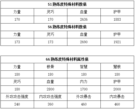 4、66特殊材料可以往下置换56/51特殊材料,1个66特殊材料=2个56特殊材料=2个51特殊材料(官方发放置换的51特殊材料数值为56特殊材料98%取整)